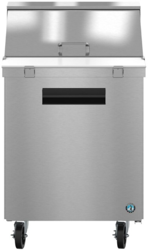 The SR27B-12M is constructed of stainless steel, which protects this unit from accidental damage and rust. Plus, it is easy to clean. The SR27B-12M also includes (1) epoxy coated wire shelf adjustable in 1/2″ increments on anodized aluminum supports, (4) 6″ stem casters (2 with brakes) are standard, plus a field reversible, spring assisted self closing door with stay open feature (no kit req’d). Electrical consumption of 2.54 kWh/day at 2.3 Amps, 10 ft long cord with a 5 – 15P NEMA plug. 27″ x 10″ x 0.5″ thick white polyethylene cutting board is standard. The unit is ETL Safety (US & C) Listed, ETL Sanitation, Georgia Made Certified and includes a 7-7-7 Warranty (seven years labor, seven years parts, seven years compressor — visit hoshizakiamerica.com/support/warranty for eligibility information).
