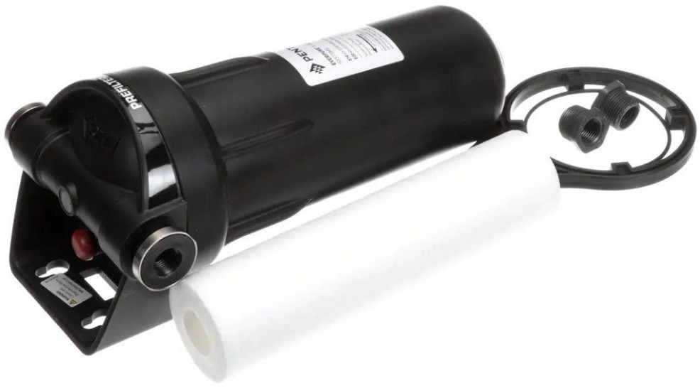 Clear housing lets you visually inspect trapped particles and makes determining when to change the cartridge easy