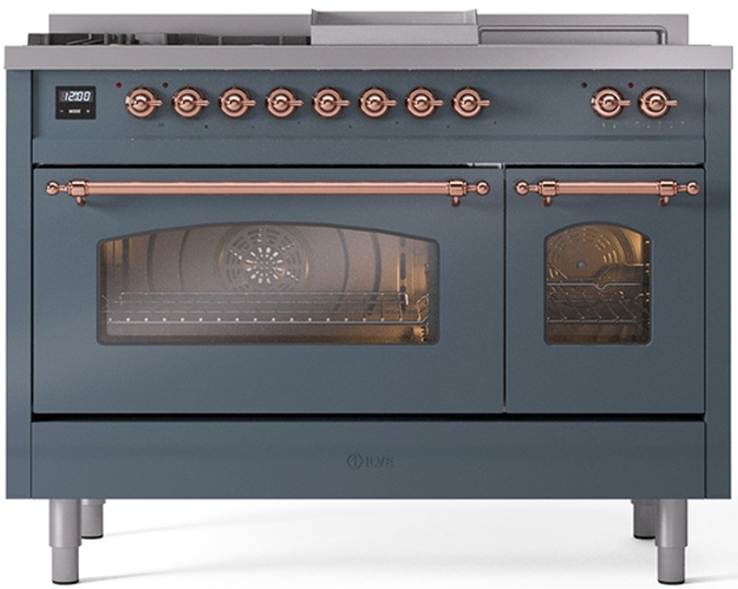 Introducing the new Nostalgie II 48" dual fuel range, a classic addition with a touch of innovation to any kitchen. This range feature sealed burners equipped with total black brass flame spreader that has a non-stick nanotechnological coating, heavy cast iron grates, 3.5 + 1.52 cu. ft. total double oven capacity and soft closing door system.Read More