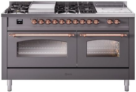 Introducing the new Nostalgie II 60" dual fuel range, a classic addition with a touch of innovation to any kitchen. This range feature sealed burners equipped with total black brass flame spreader that has a non-stick nanotechnological coating, heavy cast iron grates, 3.5 + 2.3 cu. ft. dual oven capacity and soft closing door system.Read More