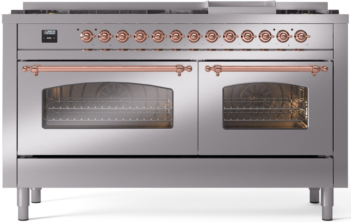 Introducing the new Nostalgie II 60" dual fuel range, a classic addition with a touch of innovation to any kitchen. This range feature sealed burners equipped with total black brass flame spreader that has a non-stick nanotechnological coating, heavy cast iron grates, 3.5 + 2.3 cu. ft. dual oven capacity and soft closing door system.Read More