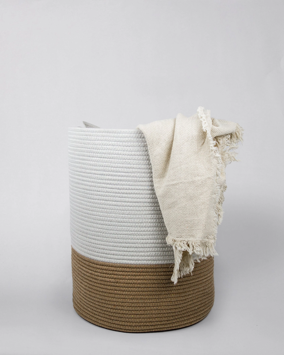 The Porto Boutique woven cotton rope storage basket. Natural pure cotton rope makes this storage basket soft to the touch, yet sturdy enough to keep its shape. Keep your home neat and tidy. Easy to wash and clean. Decorative and multipurpose basket. Perfect for guest room decor, laundry or pantry storage. Dimensions: 17" d x 20" h
