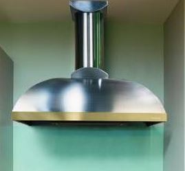 This wall mounted range hood creates a "one of a kind statement" in the kitchen. It is available with brass, copper, stainless steel, or mirror stainless steel lip treatment. Hood only available in stainless steel. Simply select the model you need, and then specify the lip treatment finish.Read More