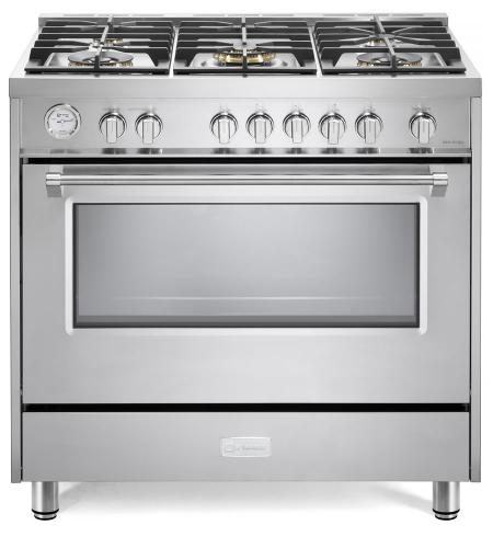 The Verona Designer series – All Gas Range takes it to the next level. Featuring all of the performance, power and features of the Verona Prestige Series this upgraded range boasts a larger, more efficient oven cavity and deeper footprint at 25 ¼”. New features include brass burners, an analog thermometer, a pullout storage drawer, 1” backguard, a color matched control panel, soft close oven door, dual convection fans and so much more. Currently available in Single Oven Gas or Electric. Soon to be available in Dual Fuel, both single & double oven. These ranges offer professional performance with a splash of style for any kitchen.
